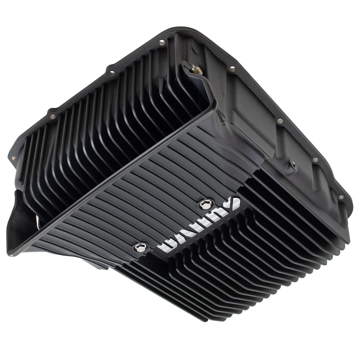We're bringing forced air cooling to the RAM 68RFE transmission. Using technology from our patented differential covers, the Banks Ram-Air Transmission Pan cools quicker than stock and all competitors. This extends fluid life. An additional three quarts of capacity, a break-away Ram-Air scoop, and Banks FlowThru® Fins aid in cooling. Cooler fluid means a longer-lasting bearings and clutch packs. The design is so innovative, it was awarded a U.S. patent.